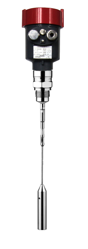 導(dǎo)波雷達液位計的電磁脈沖以光速沿鋼纜或探棒傳播,當遇到被測介質(zhì)表面時,部分脈沖被反射回來形成回波,并沿相同路徑返回到脈沖發(fā)射裝置,發(fā)射裝置與被測介質(zhì)表面的距離同脈沖在其間的傳播時間成正比,回波的極性和振幅取決于上層介質(zhì)與下層介質(zhì)的介電常數(shù)εr。一般來講,上層的介質(zhì)通常為氣體,其介電常數(shù)接近εr1.0,下層被測介質(zhì)的介電常數(shù)較高。